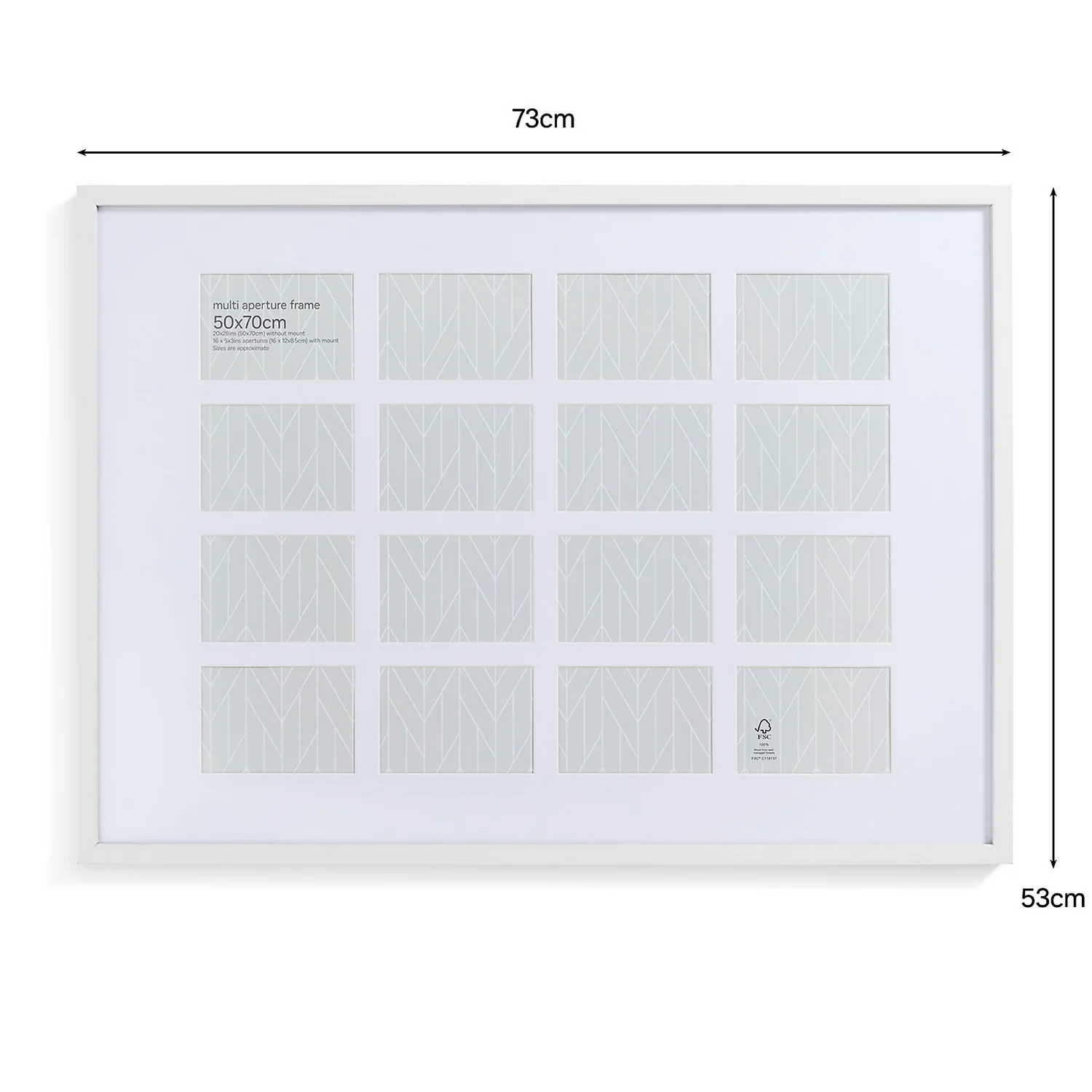 - Suitable for image size 50 x 70cm without mount or 16 x 5 x 3in images with multi aperture mount