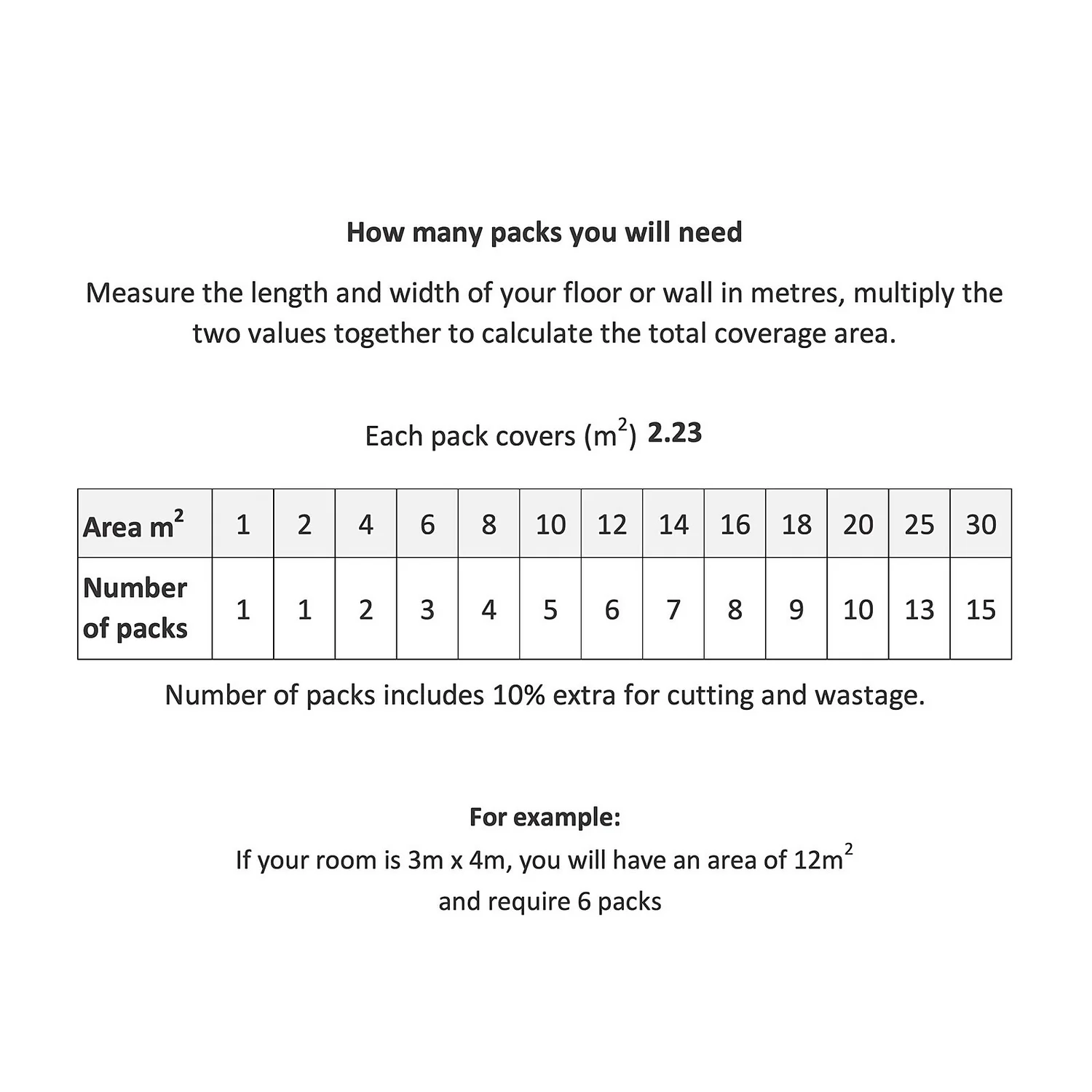 | Coverage Per Pack | 2.23sqm |