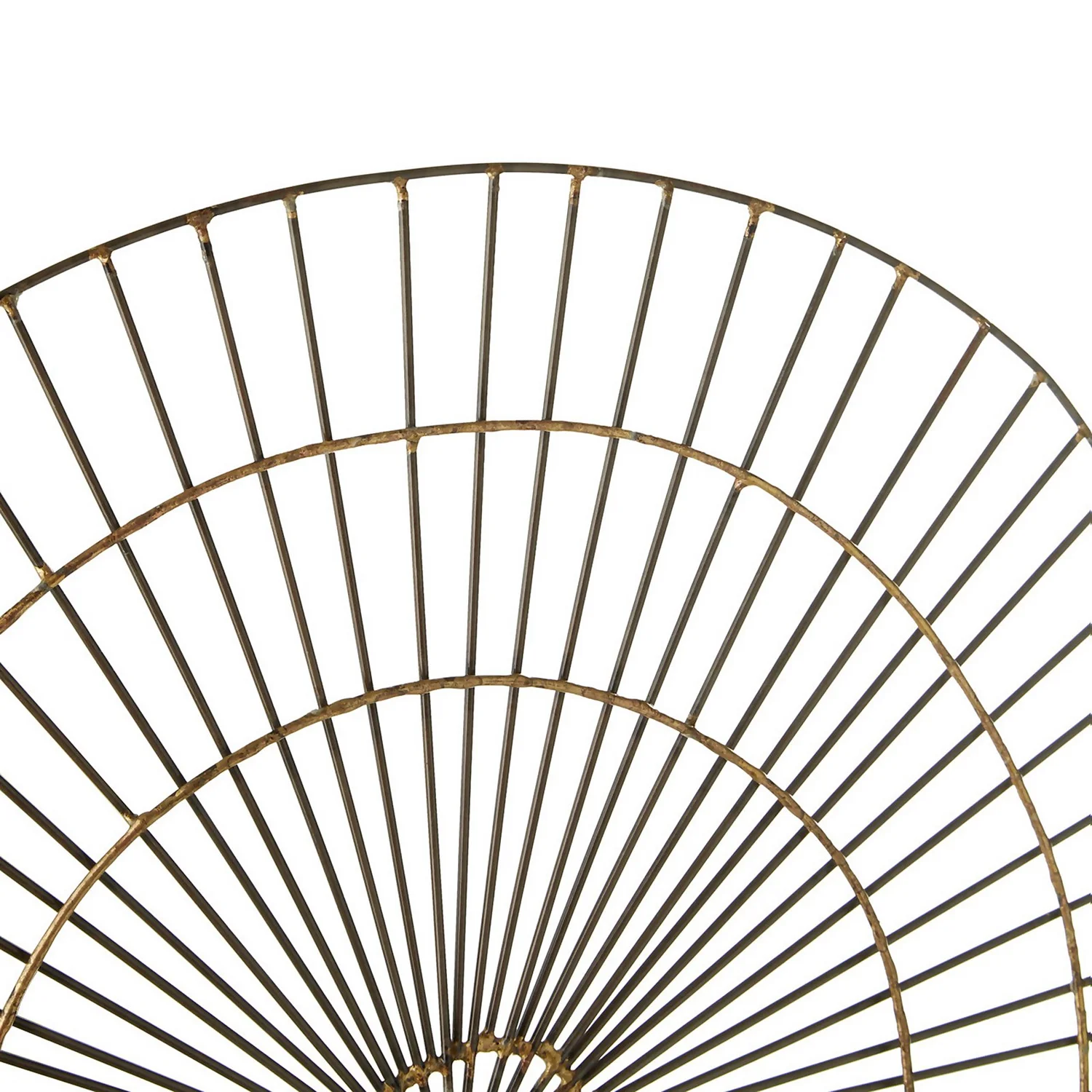 Sleek iron wires emerge out of a circular centre to form the sunburst design frame of this small piece of wall art. Bright gold finish detailing effortlessly blends with the more muted hues of the wire frame and its irregular, curvy rim. Use this abstract piece of art to make a statement in a contemporary setting.